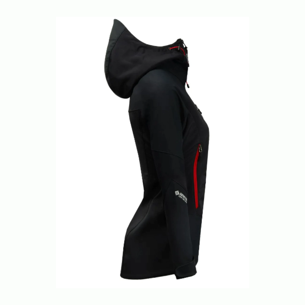 Campera técnica de dama para actividades de montaña, desde trekking a expediciones. Su calce ajustado con bolsillos alpinos la hacen ideal para llevar mochila. Tejido WINDSTOPPER® Soft Shell 100% cortaviento y respirable.