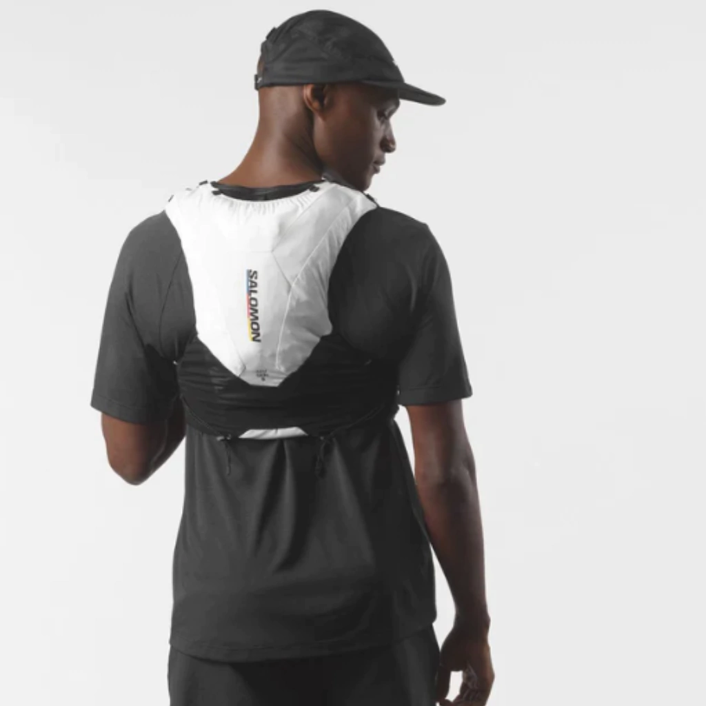 Nuestro chaleco de hidratación más vendido vuelve con un nuevo diseño para mejorar la estabilidad, el ajuste y la versatilidad, además de una llamativa silueta en blanco y negro con detalles de la bandera de competición.